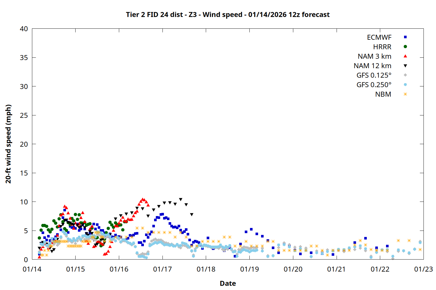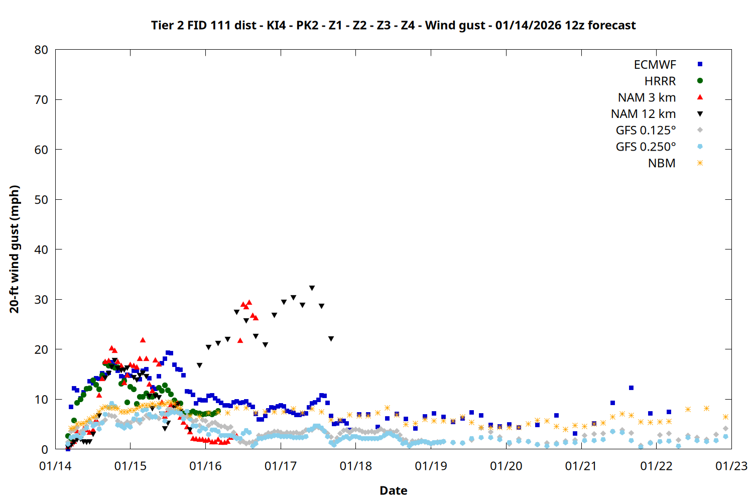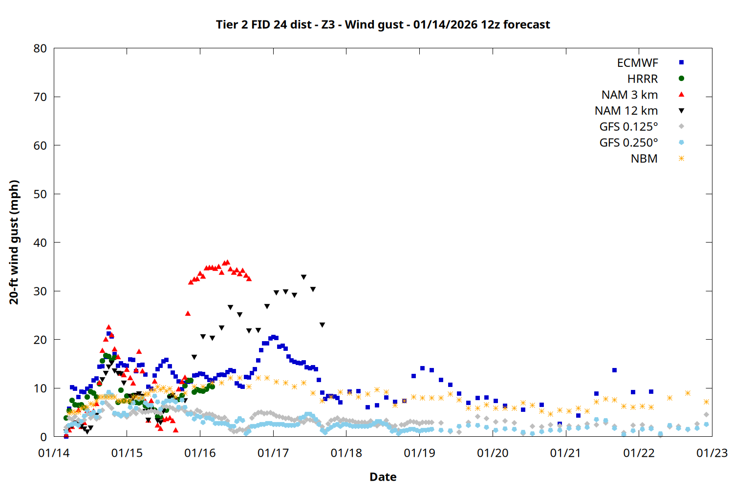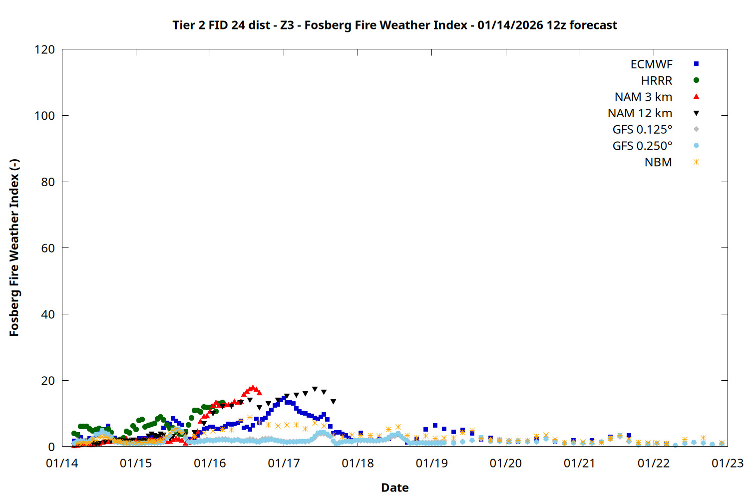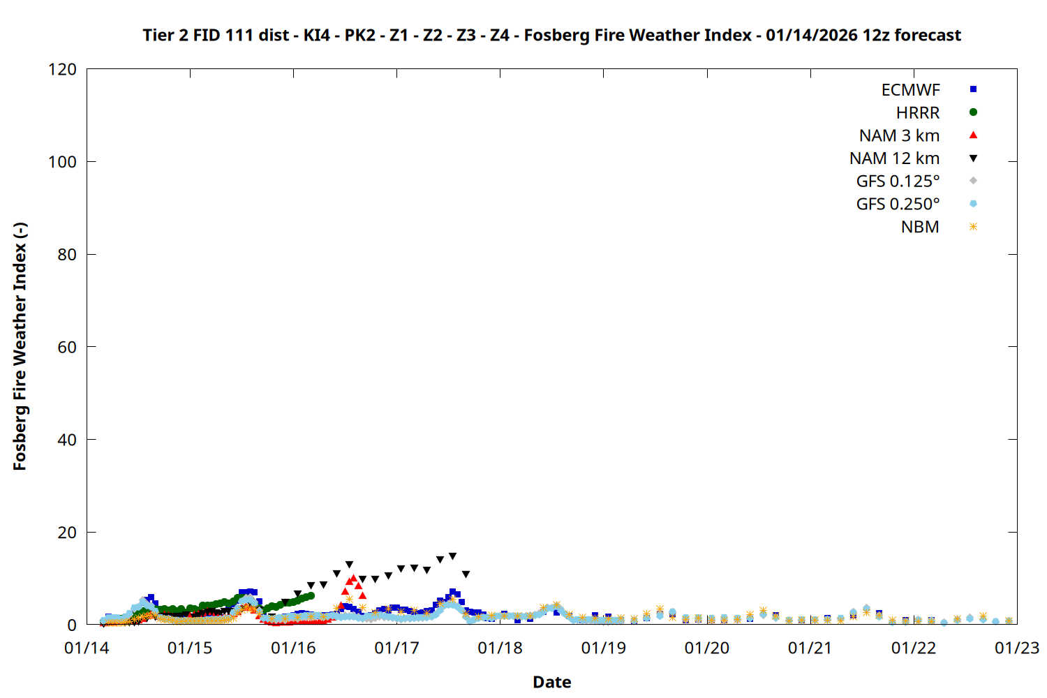 | Zone | Jan 14 | Jan 15 | Jan 16 | Jan 17 | Jan 18 | Jan 19 | Jan 20 |
