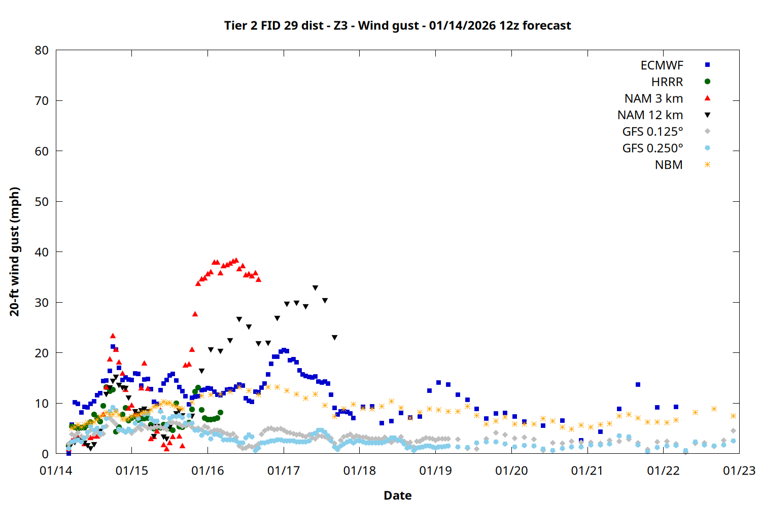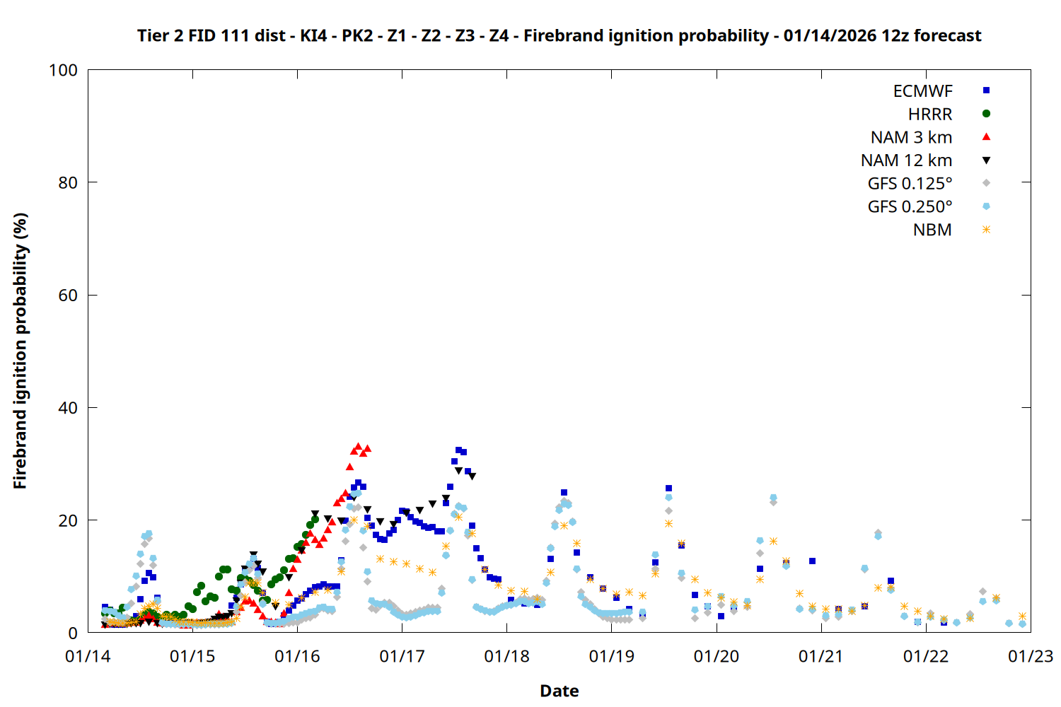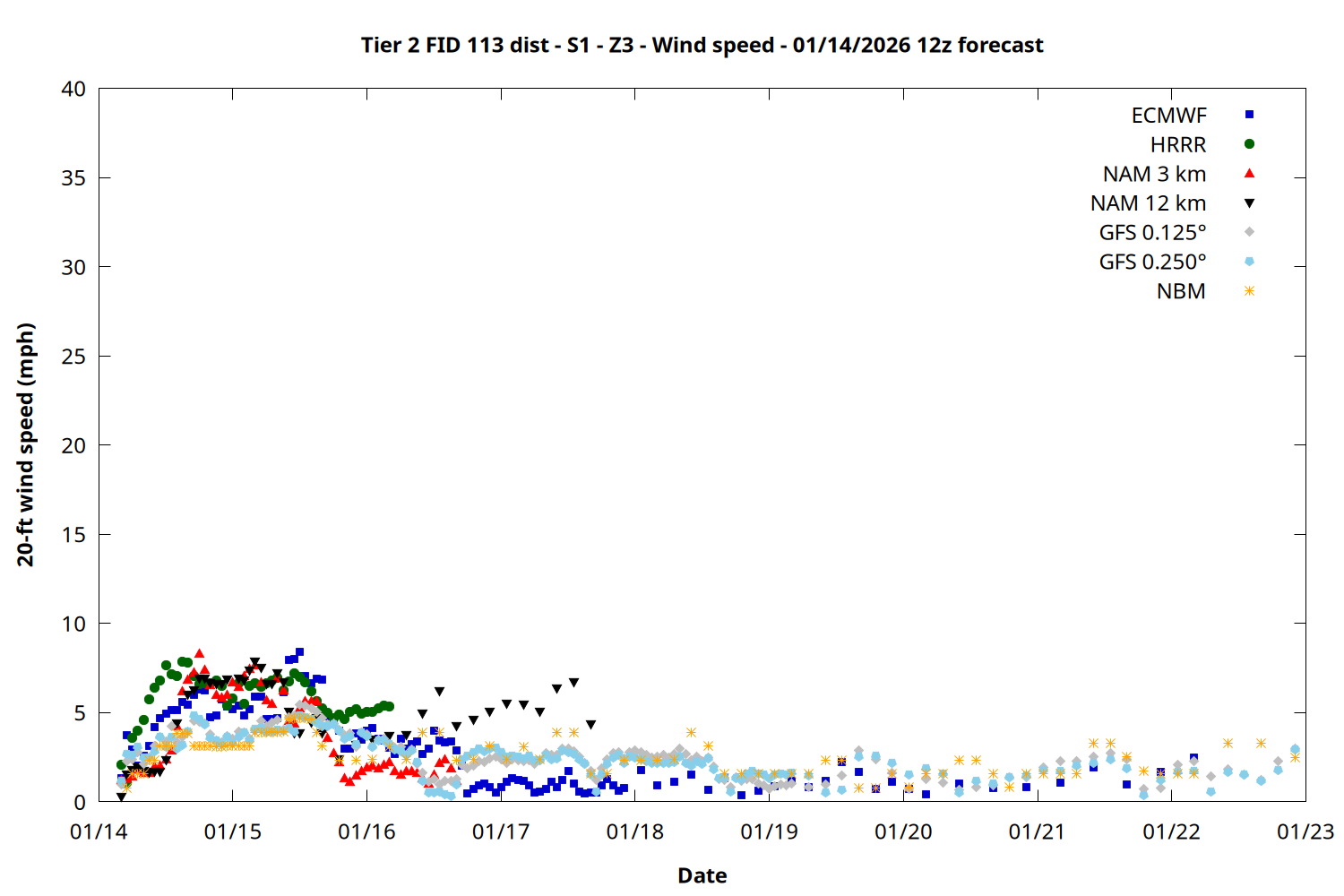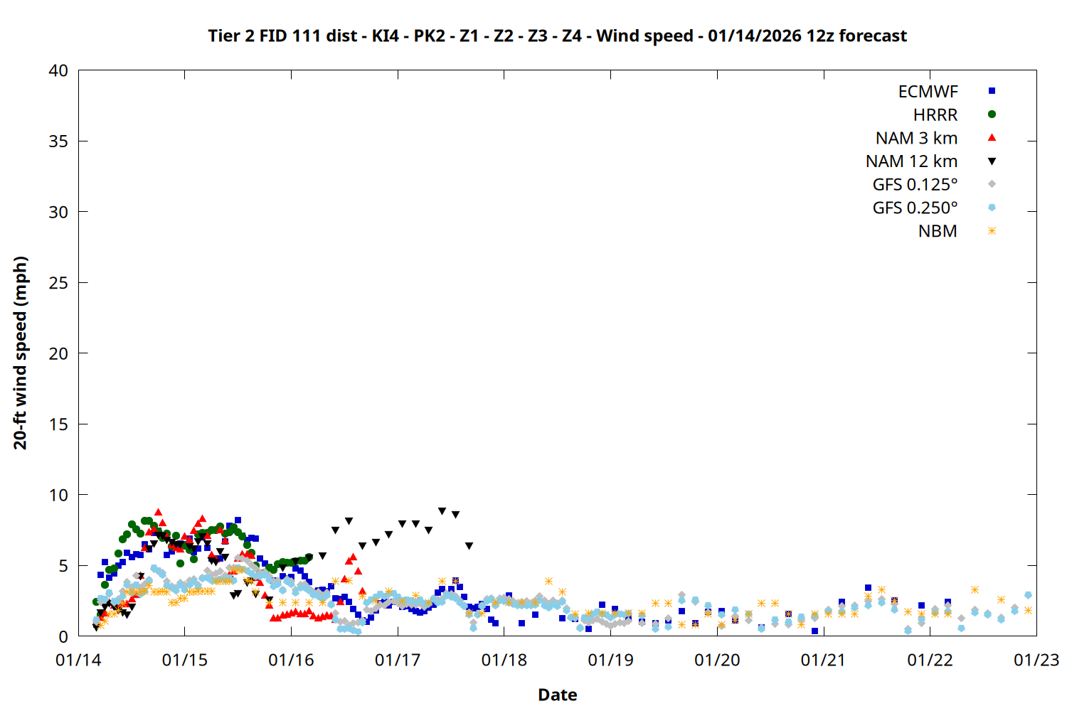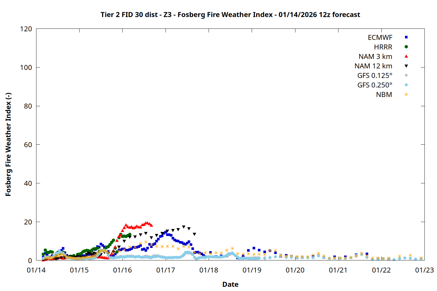 | Zone | Jan 14 | Jan 15 | Jan 16 | Jan 17 | Jan 18 | Jan 19 | Jan 20 |