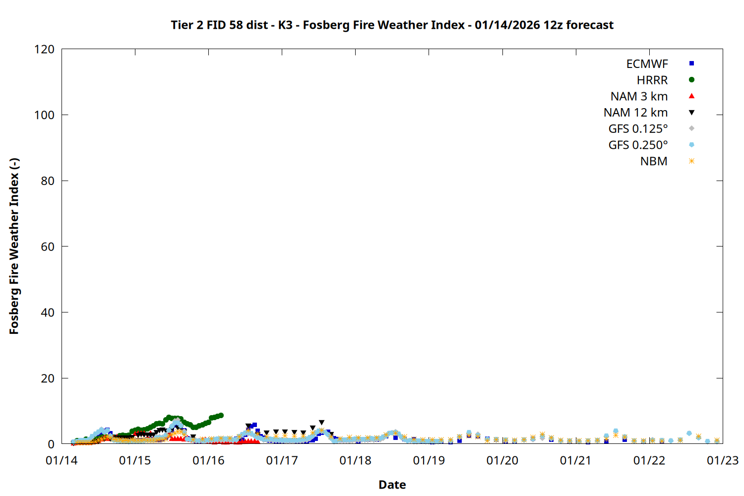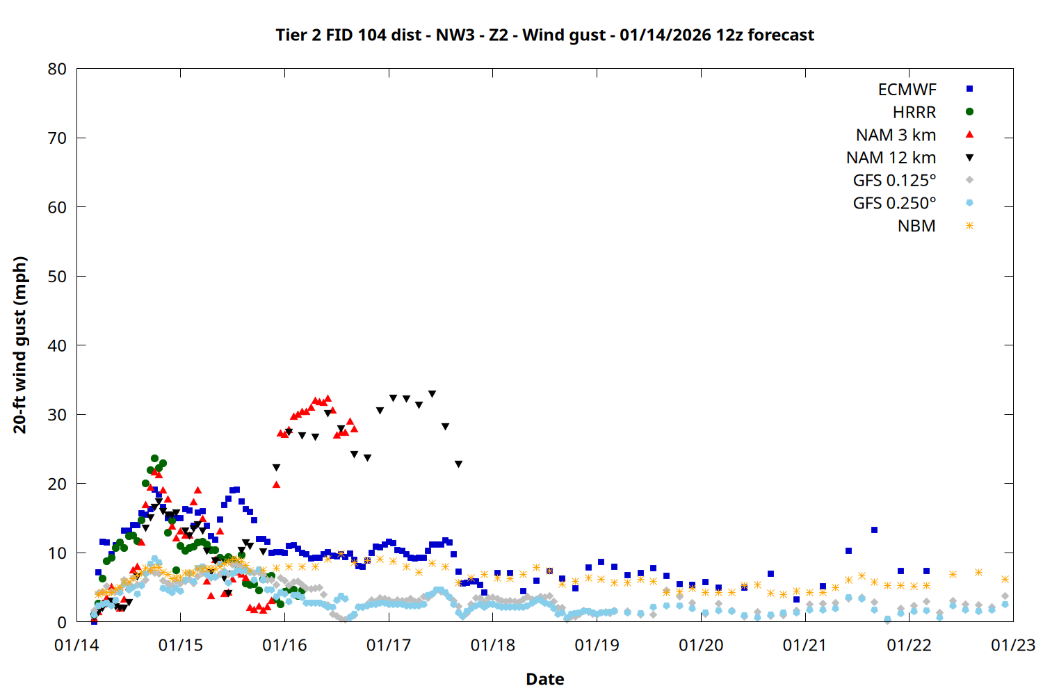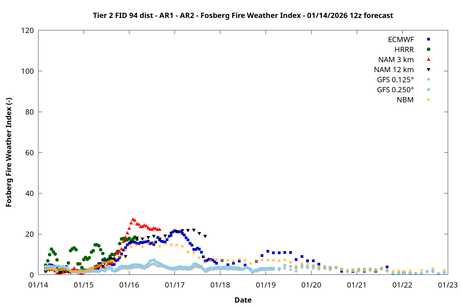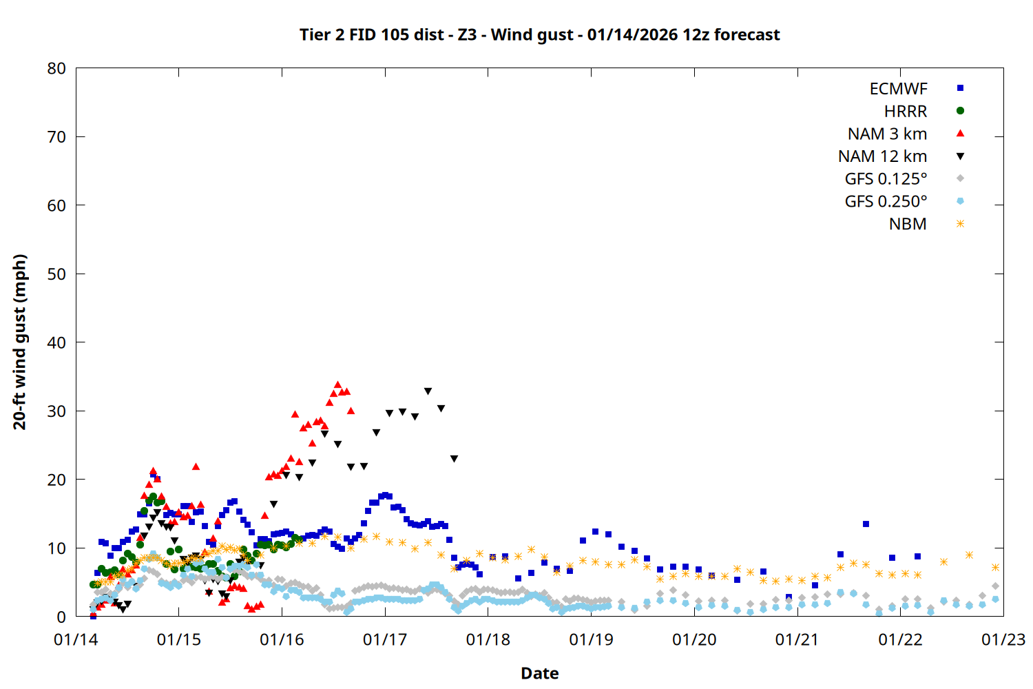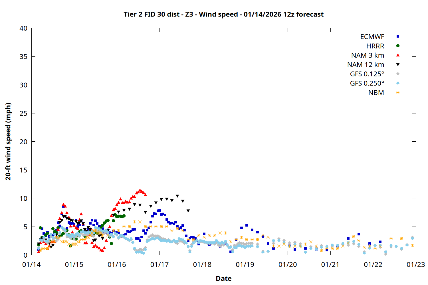 | Zone | Jan 14 | Jan 15 | Jan 16 | Jan 17 | Jan 18 | Jan 19 | Jan 20 |