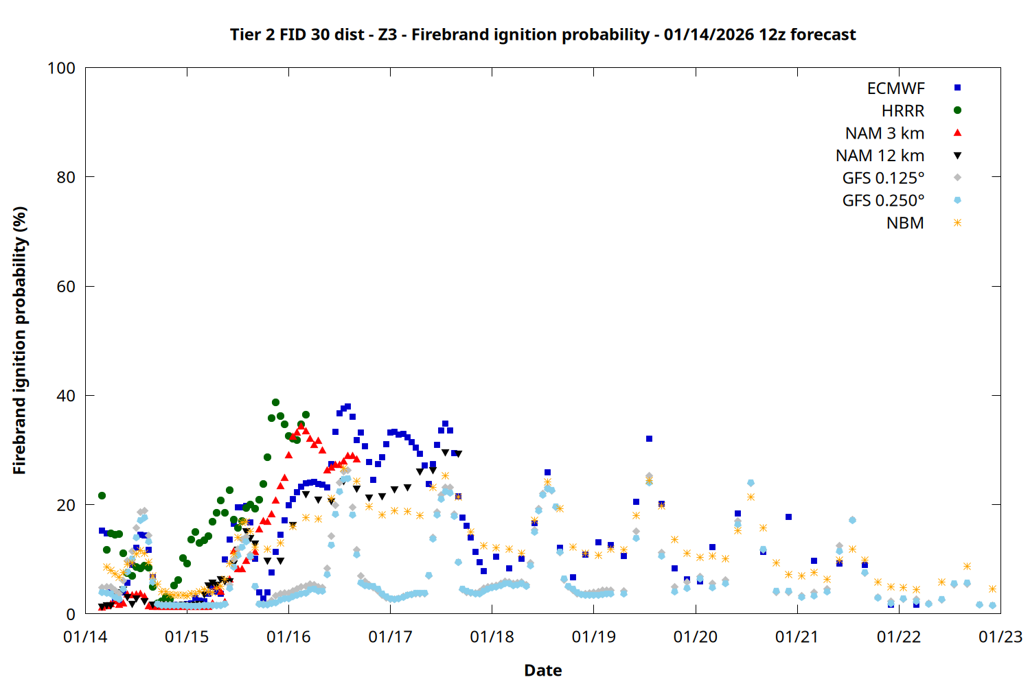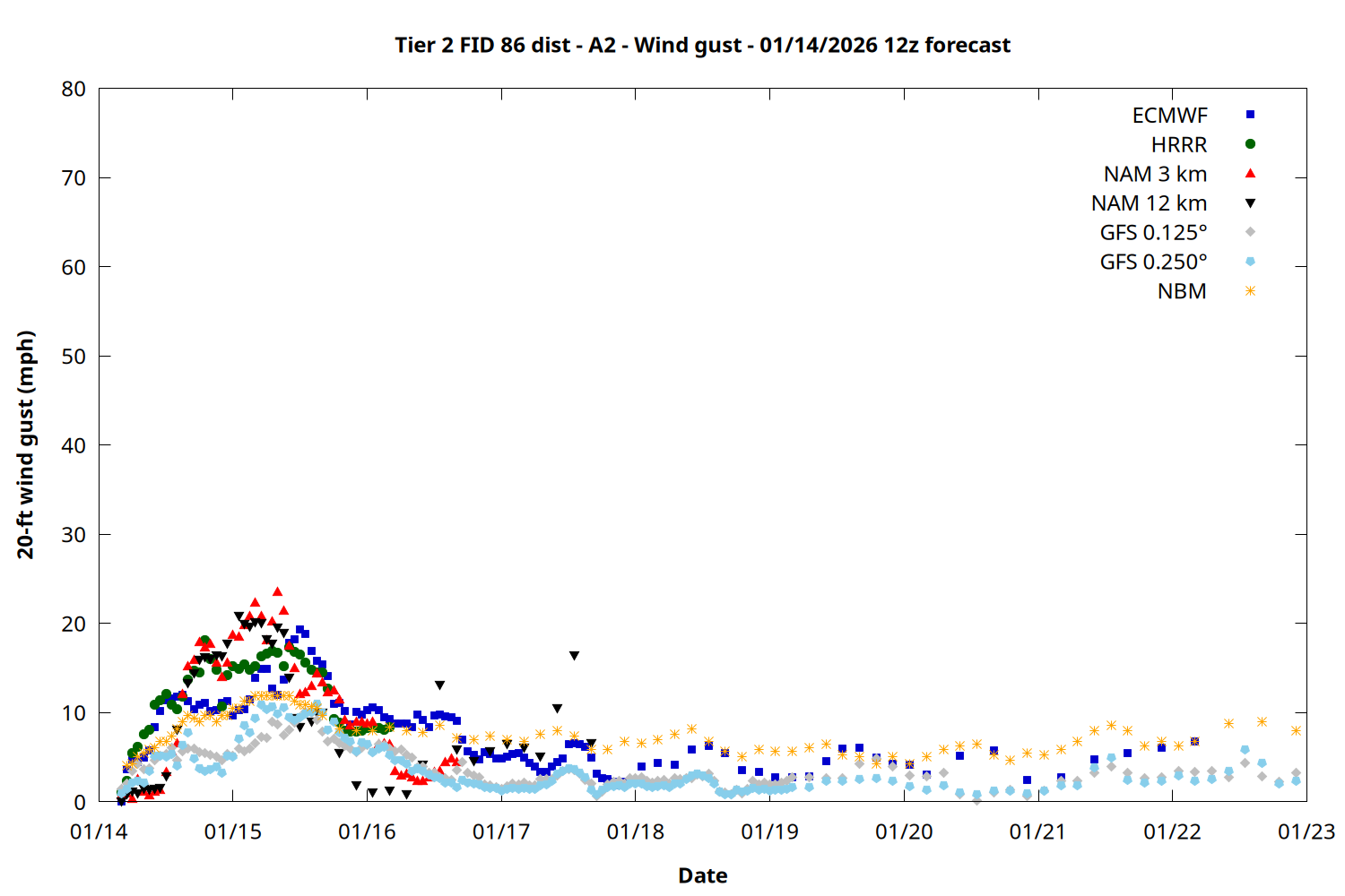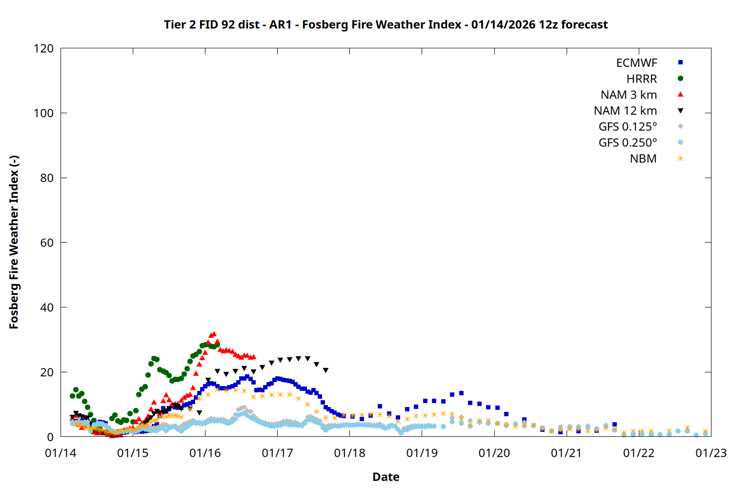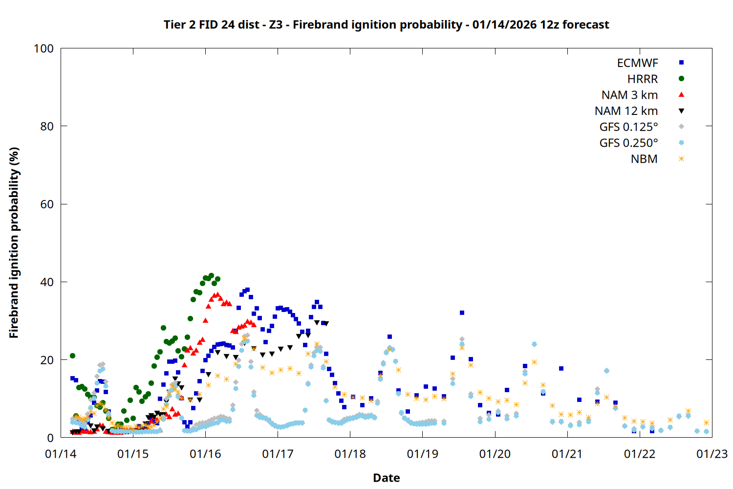 | Zone | Jan 14 | Jan 15 | Jan 16 | Jan 17 | Jan 18 | Jan 19 | Jan 20 |