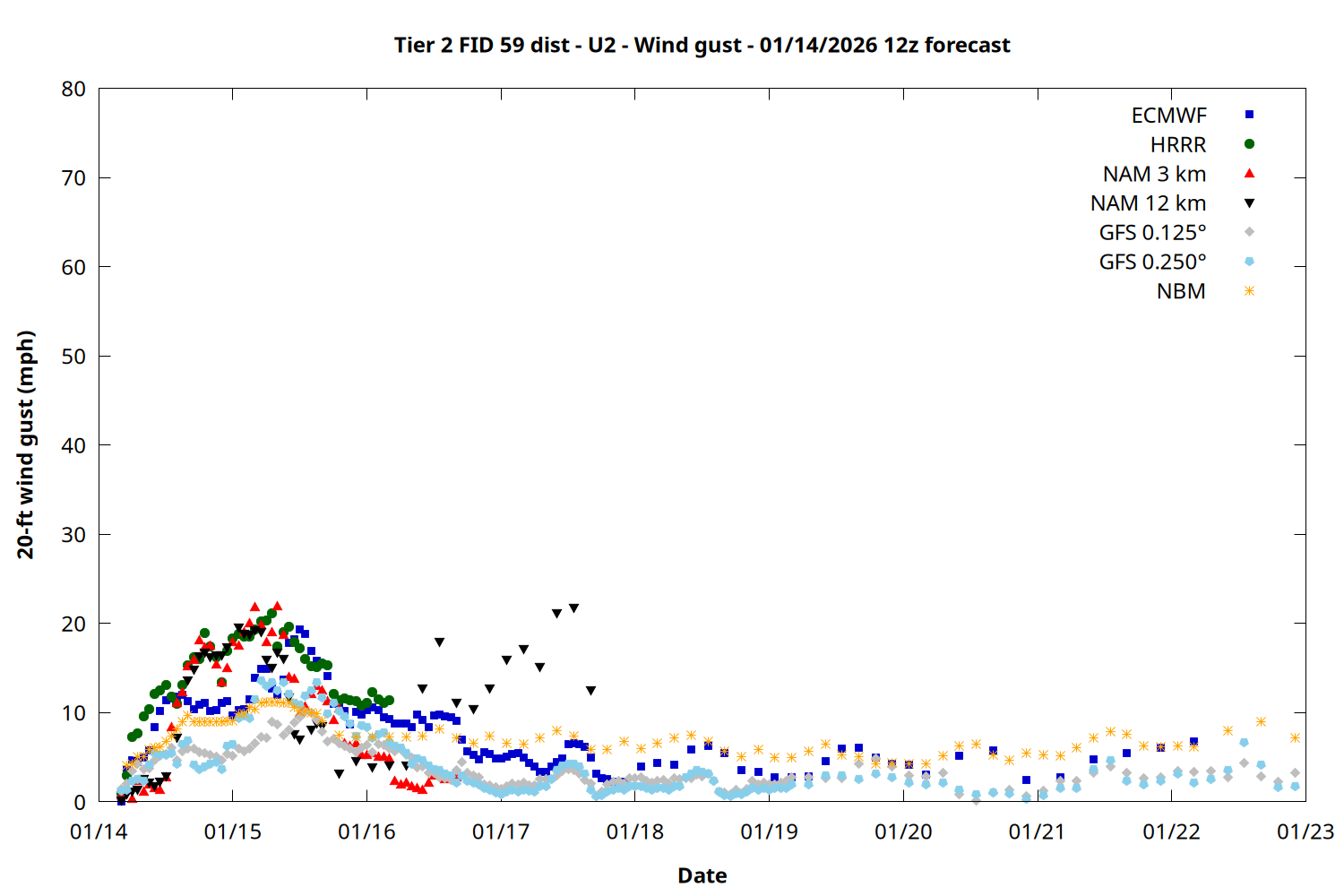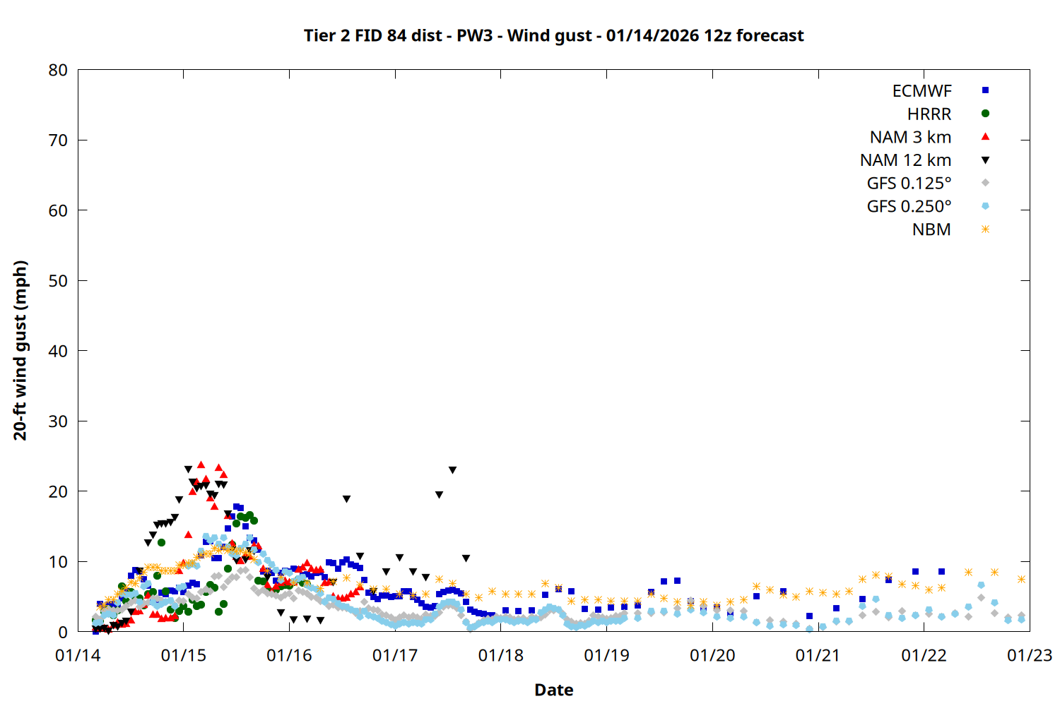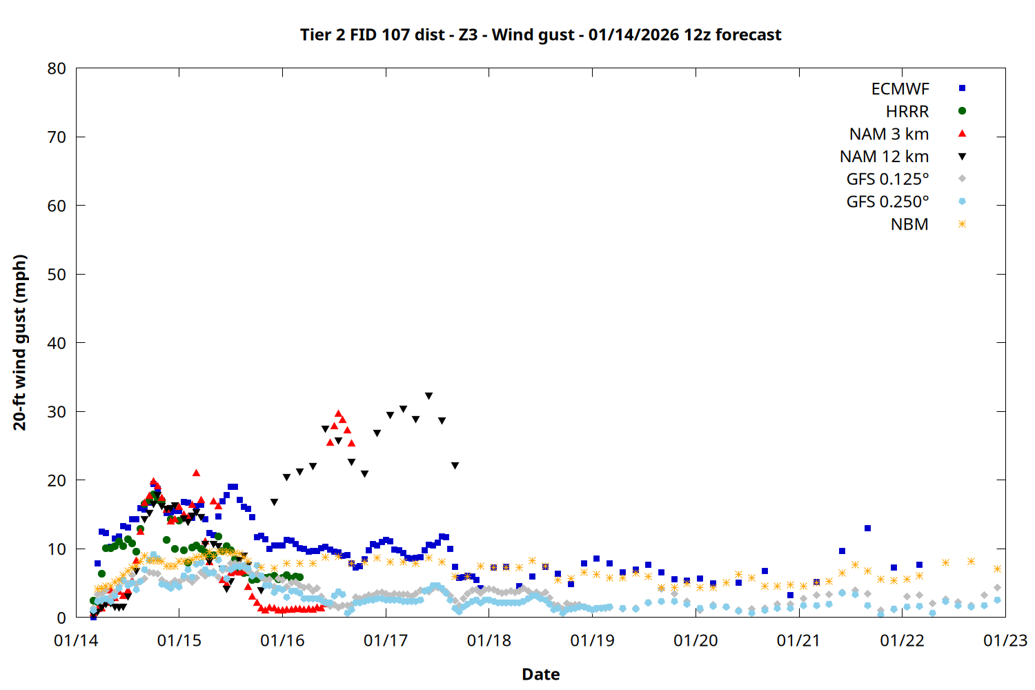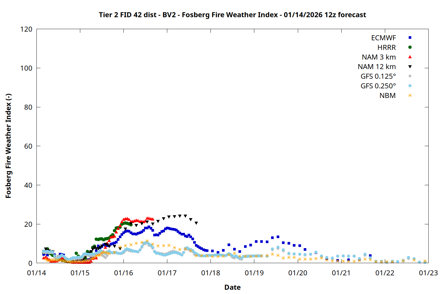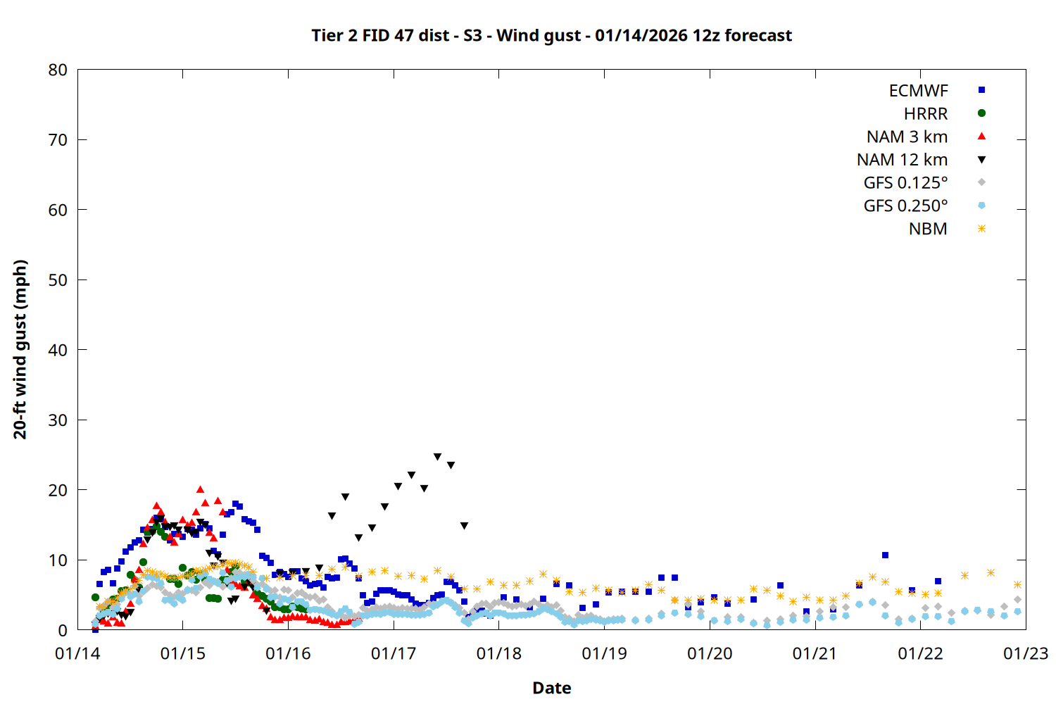 | Zone | Jan 14 | Jan 15 | Jan 16 | Jan 17 | Jan 18 | Jan 19 | Jan 20 |