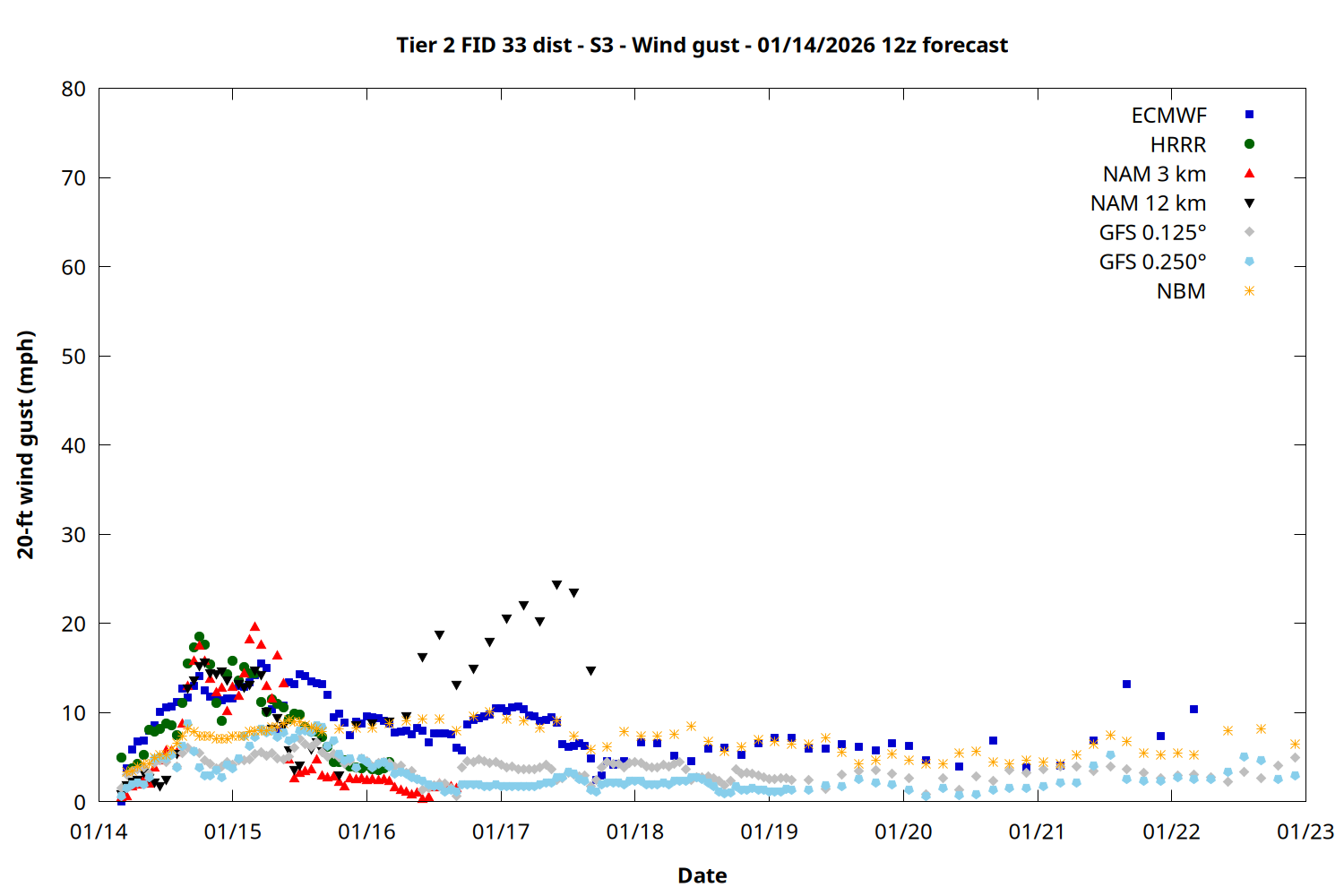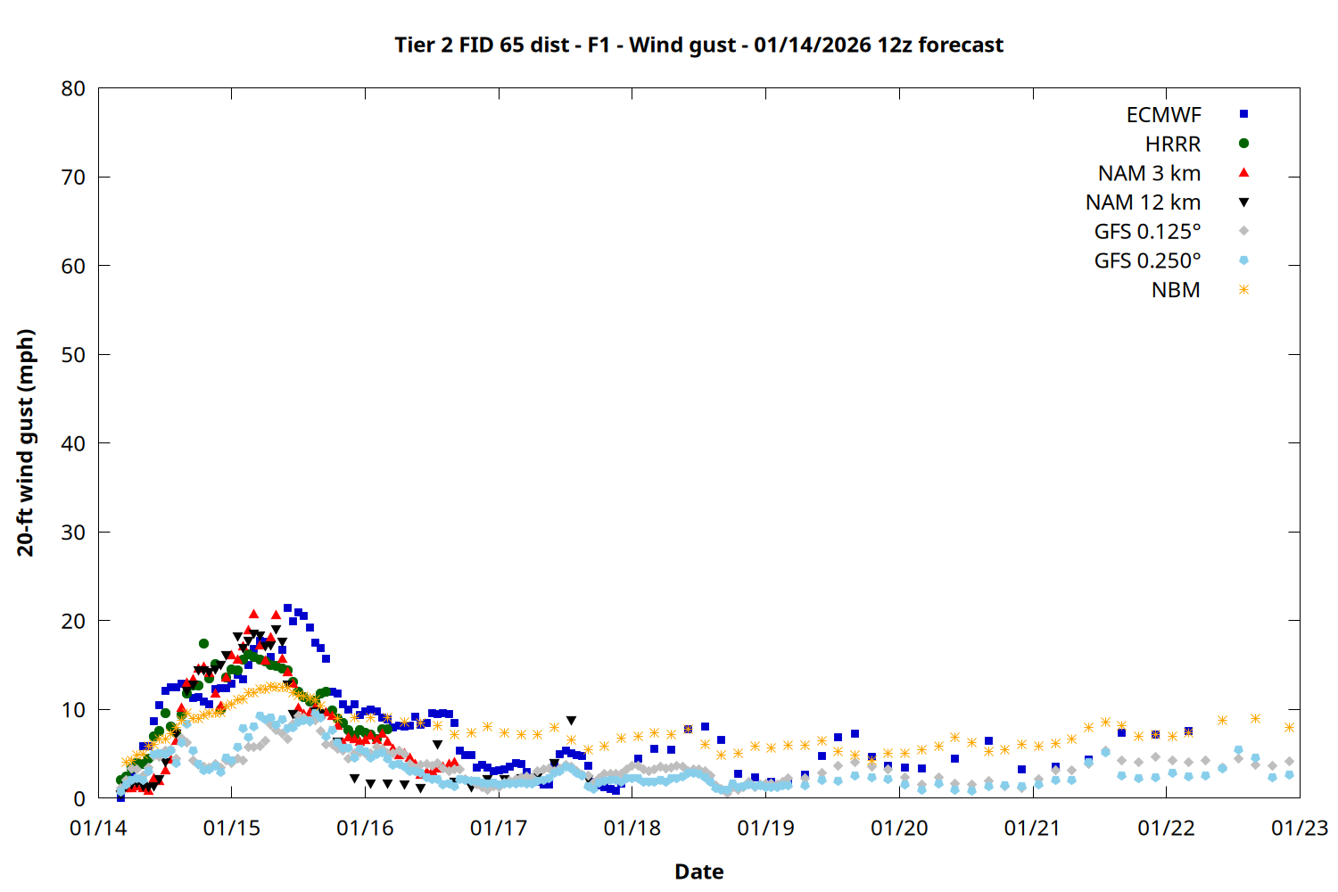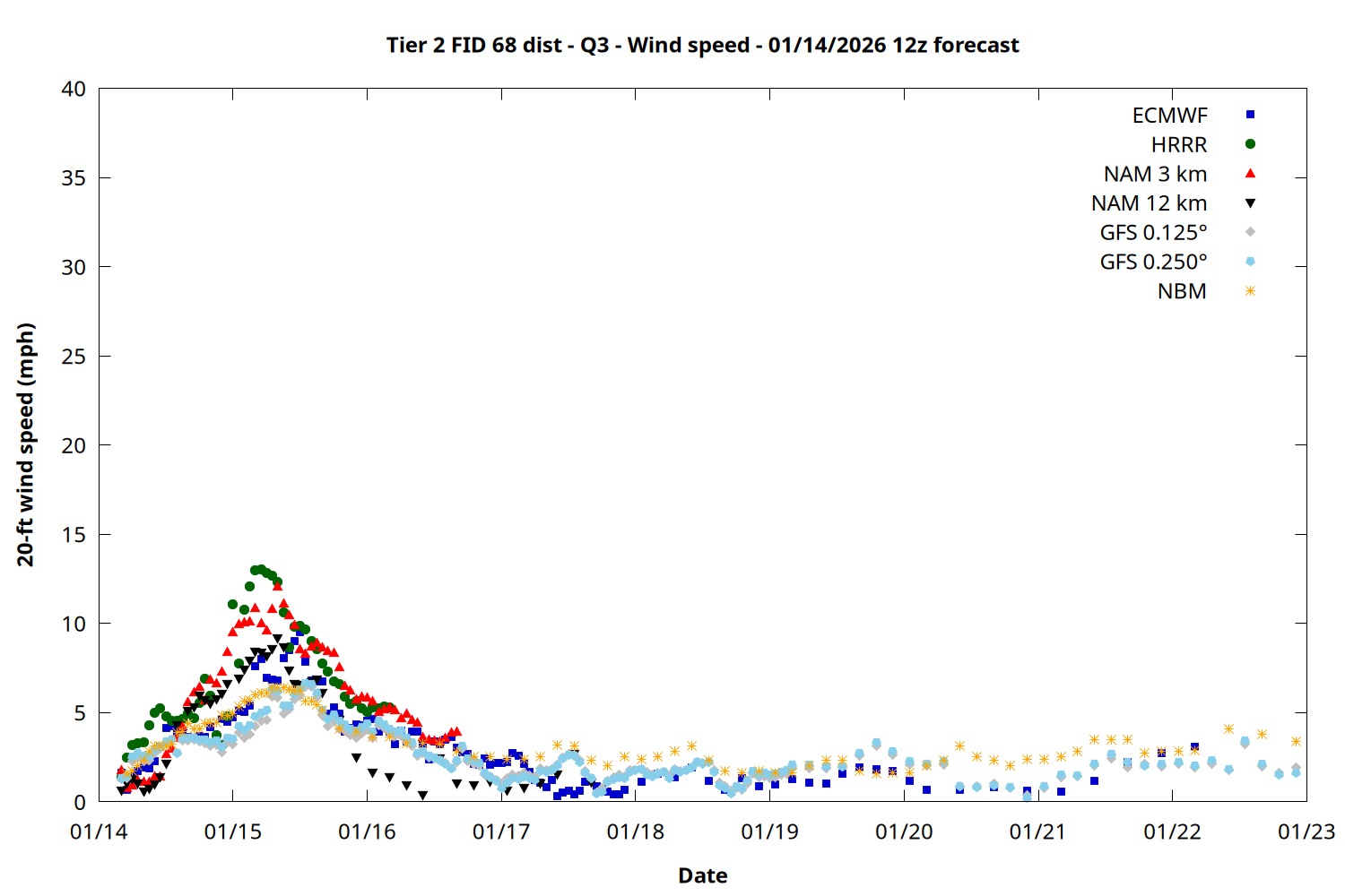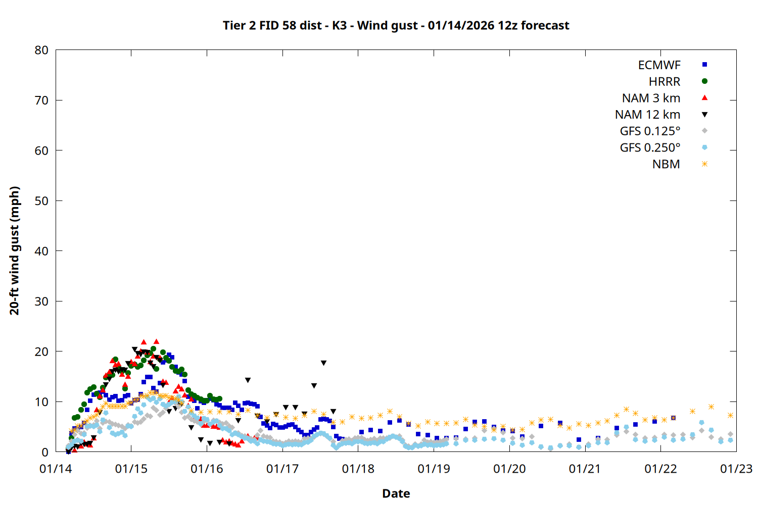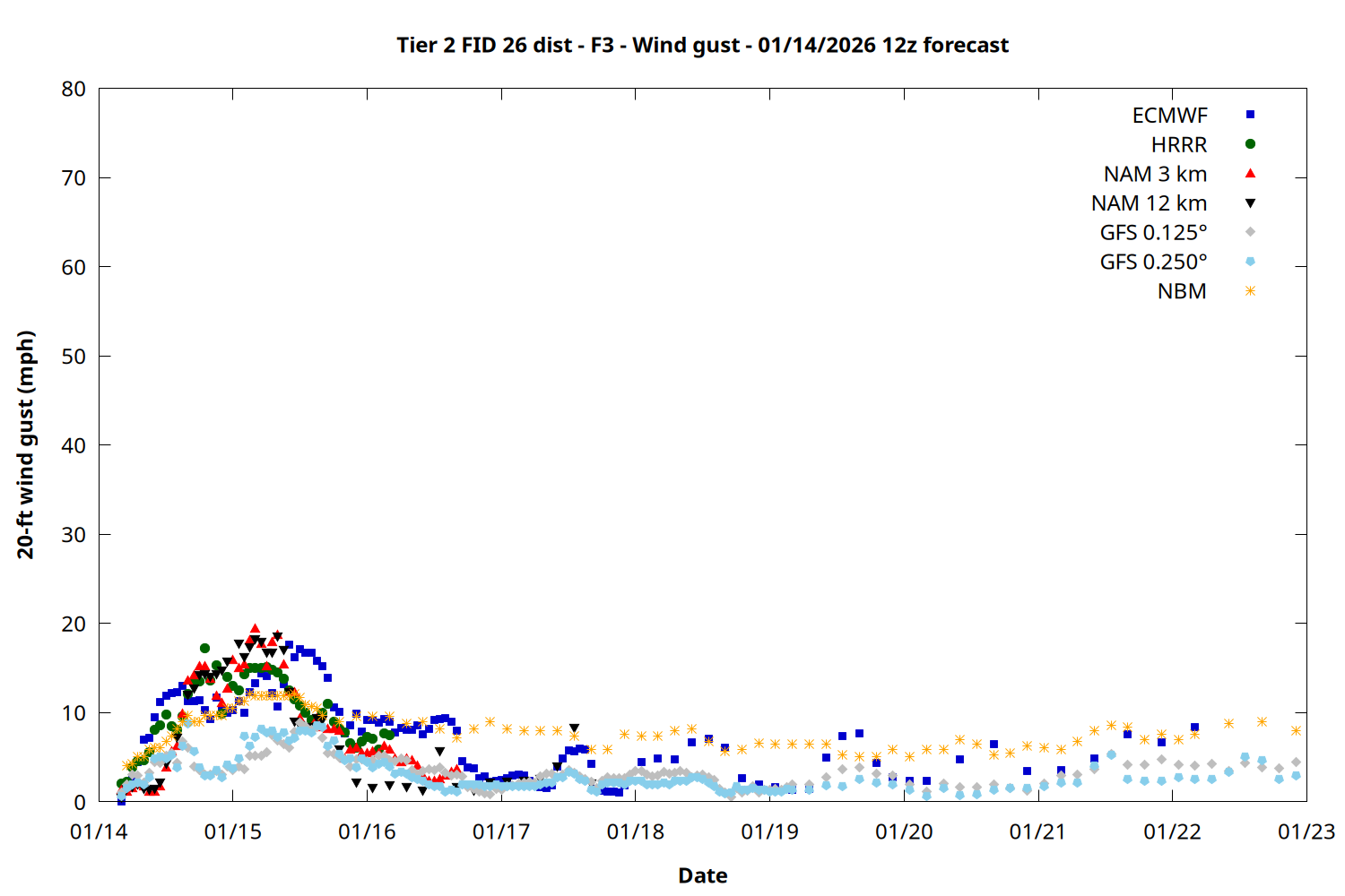 | Zone | Jan 14 | Jan 15 | Jan 16 | Jan 17 | Jan 18 | Jan 19 | Jan 20 |
