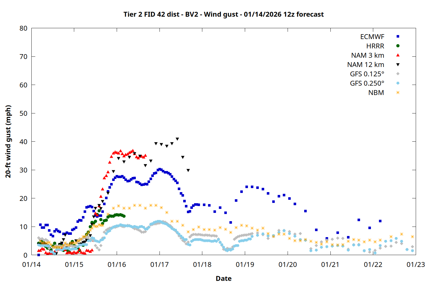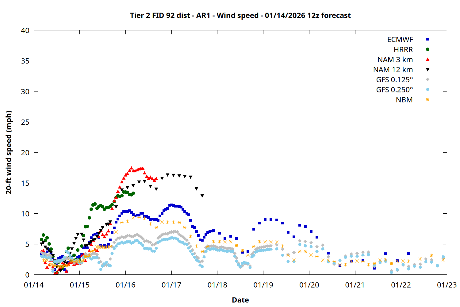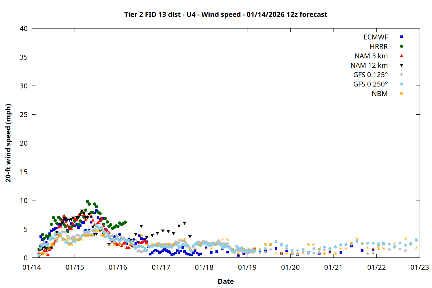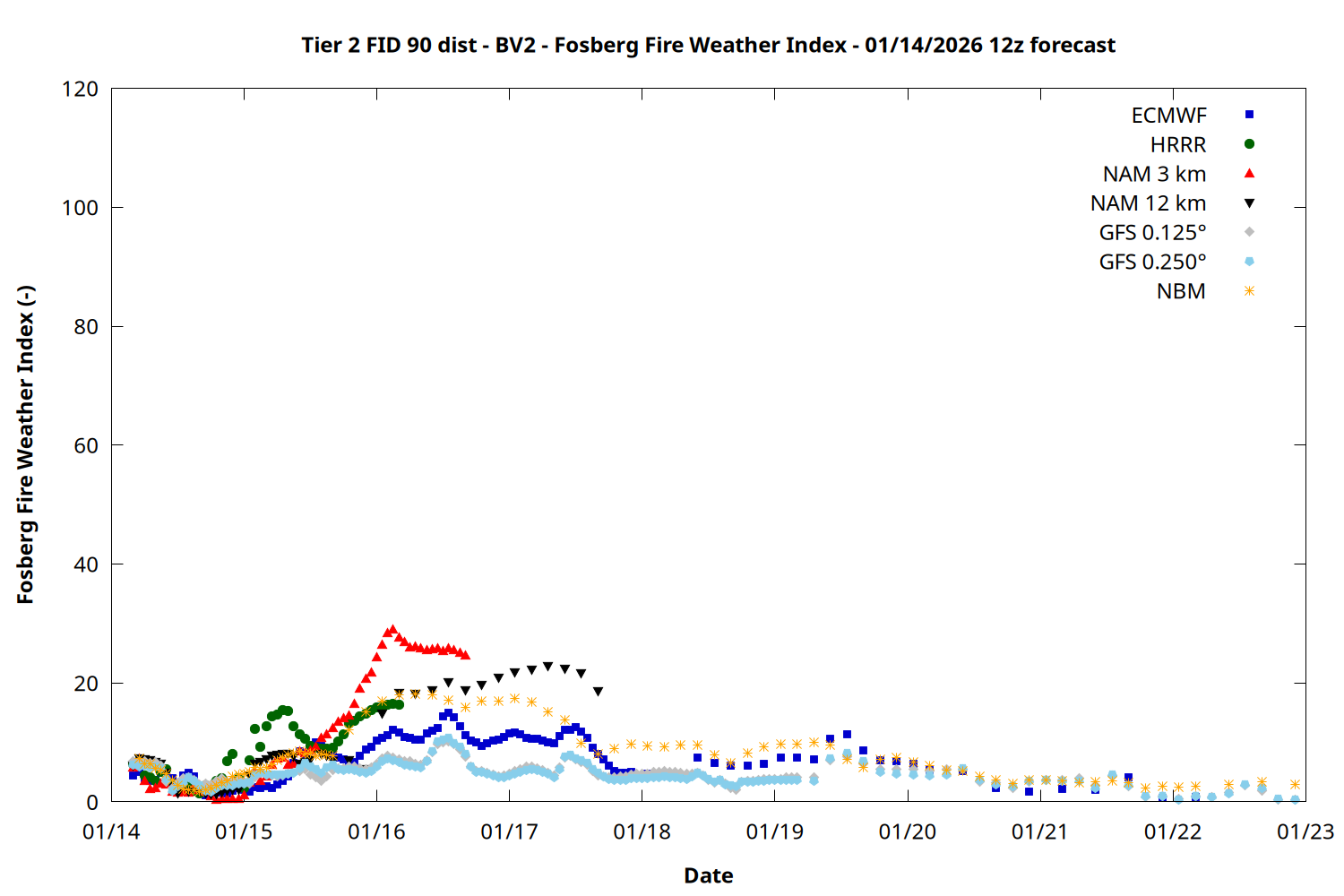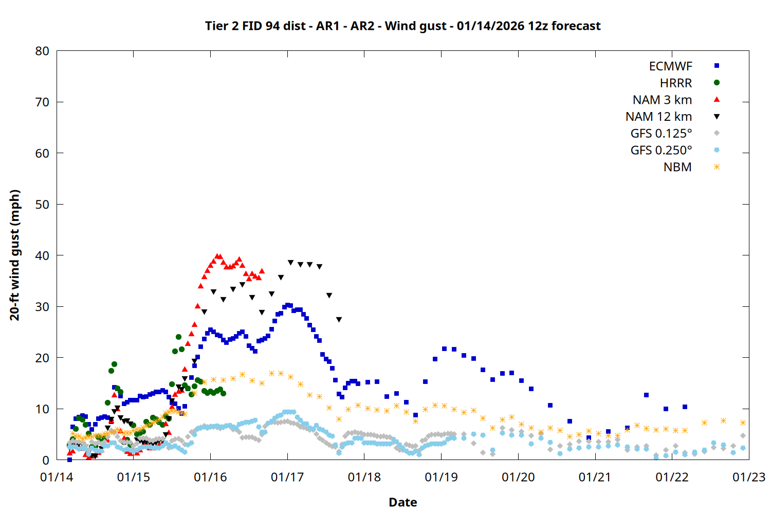 | Zone | Jan 14 | Jan 15 | Jan 16 | Jan 17 | Jan 18 | Jan 19 | Jan 20 |