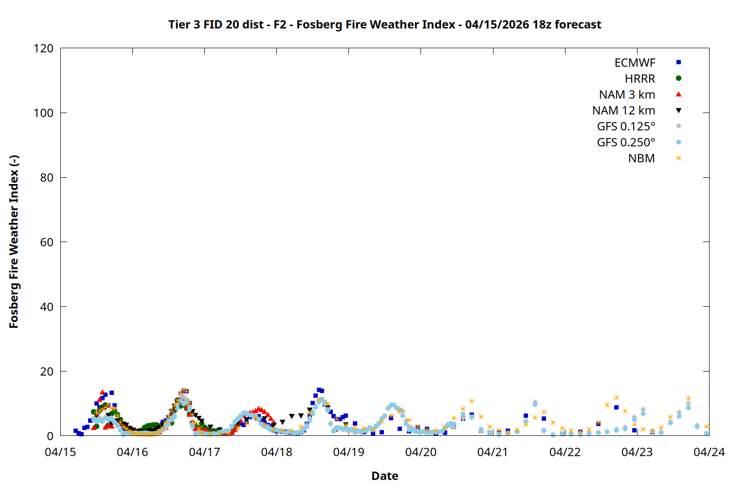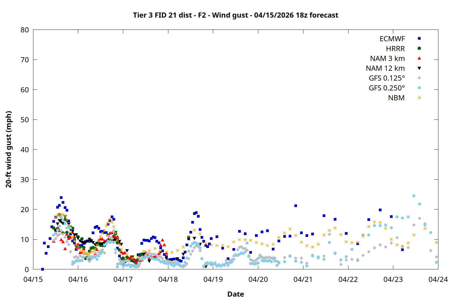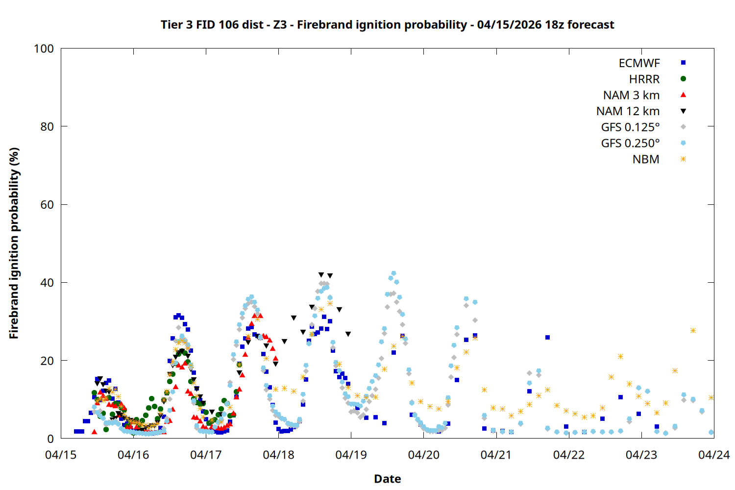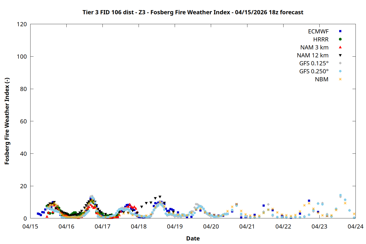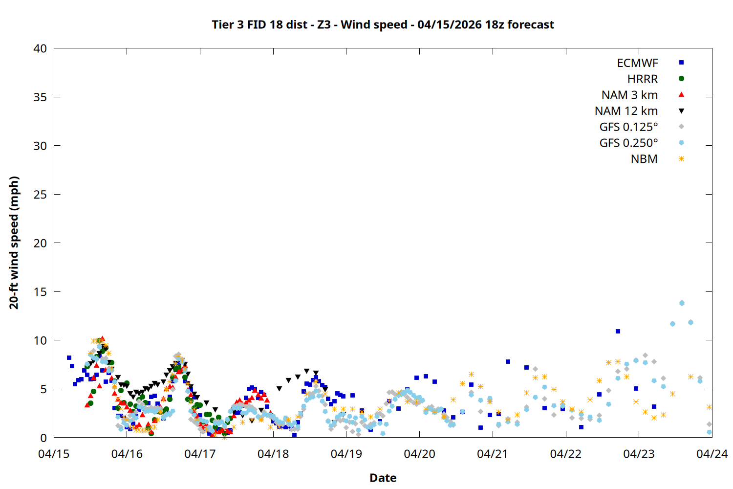 | Zone | Apr 15 | Apr 16 | Apr 17 | Apr 18 | Apr 19 | Apr 20 | Apr 21 |