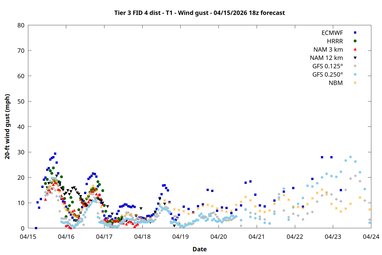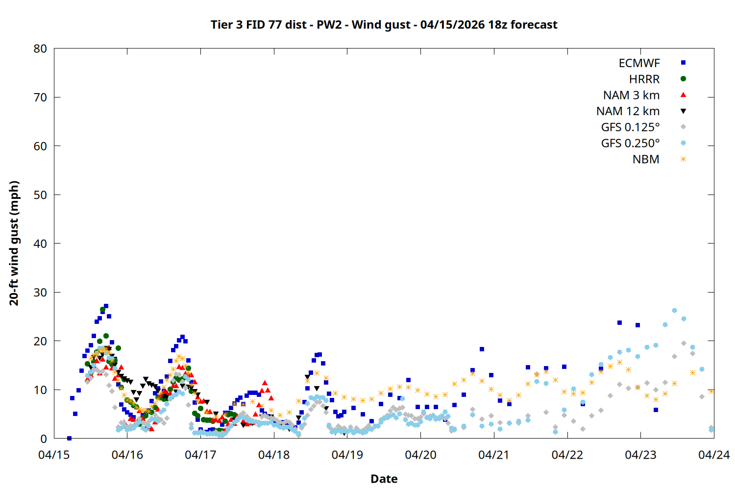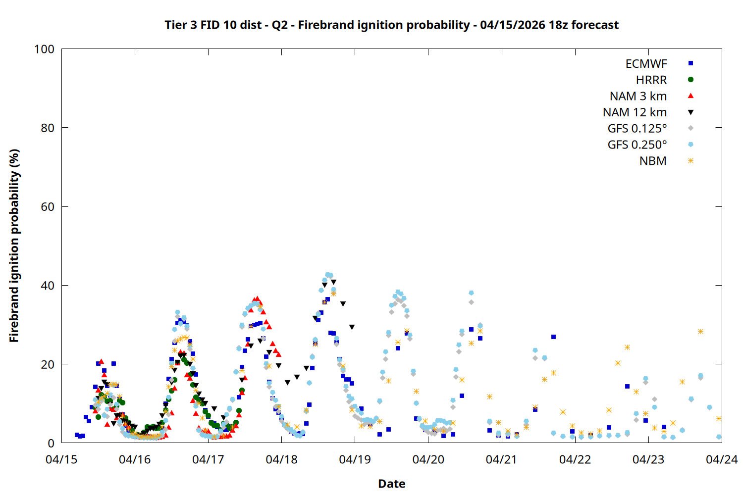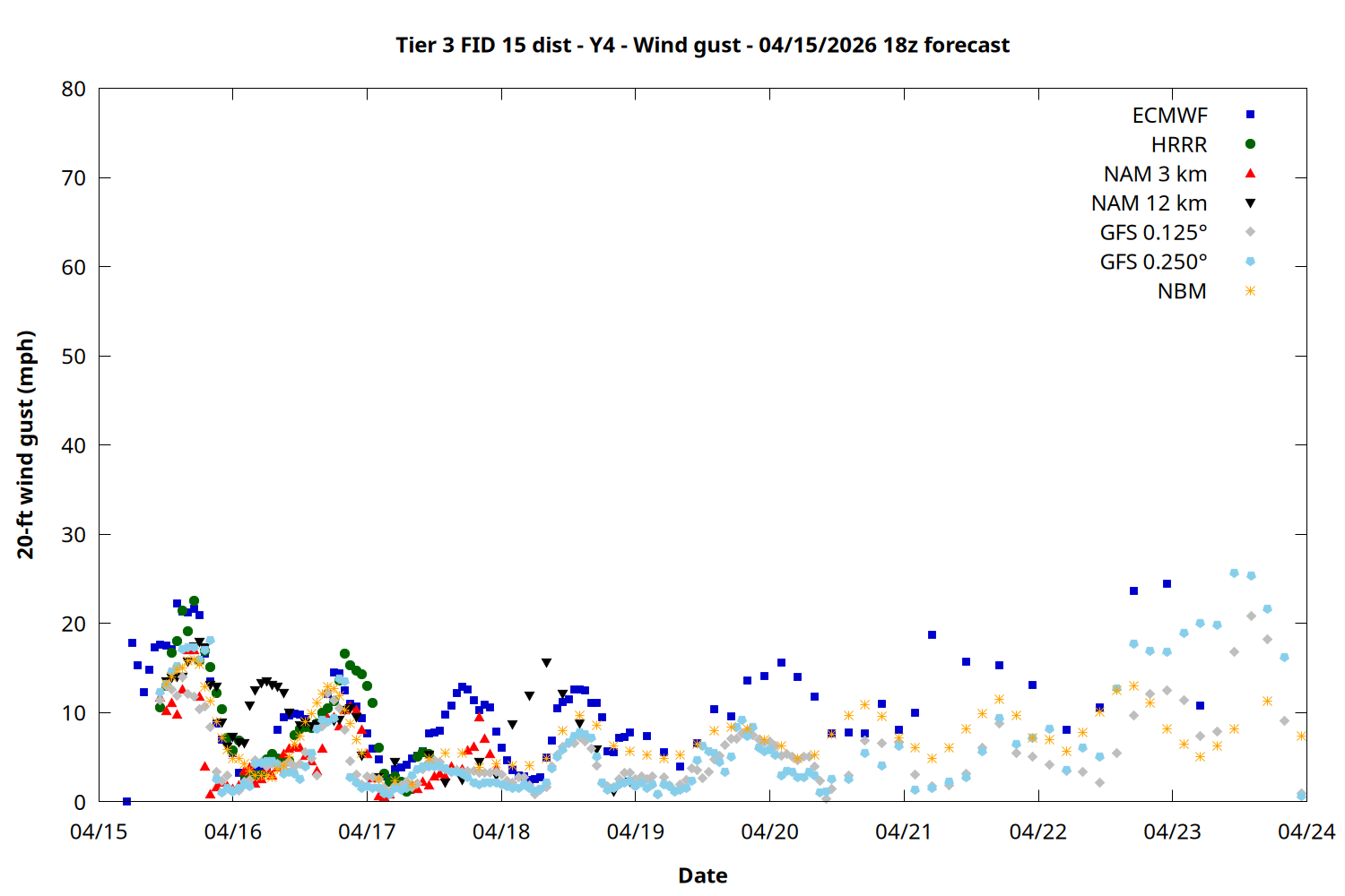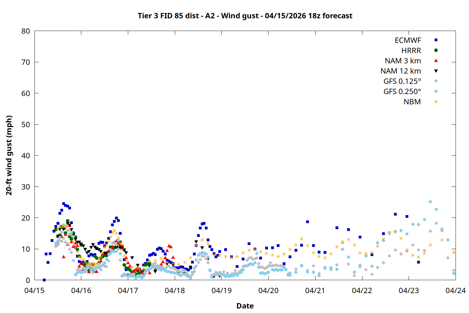 | Zone | Apr 15 | Apr 16 | Apr 17 | Apr 18 | Apr 19 | Apr 20 | Apr 21 |
