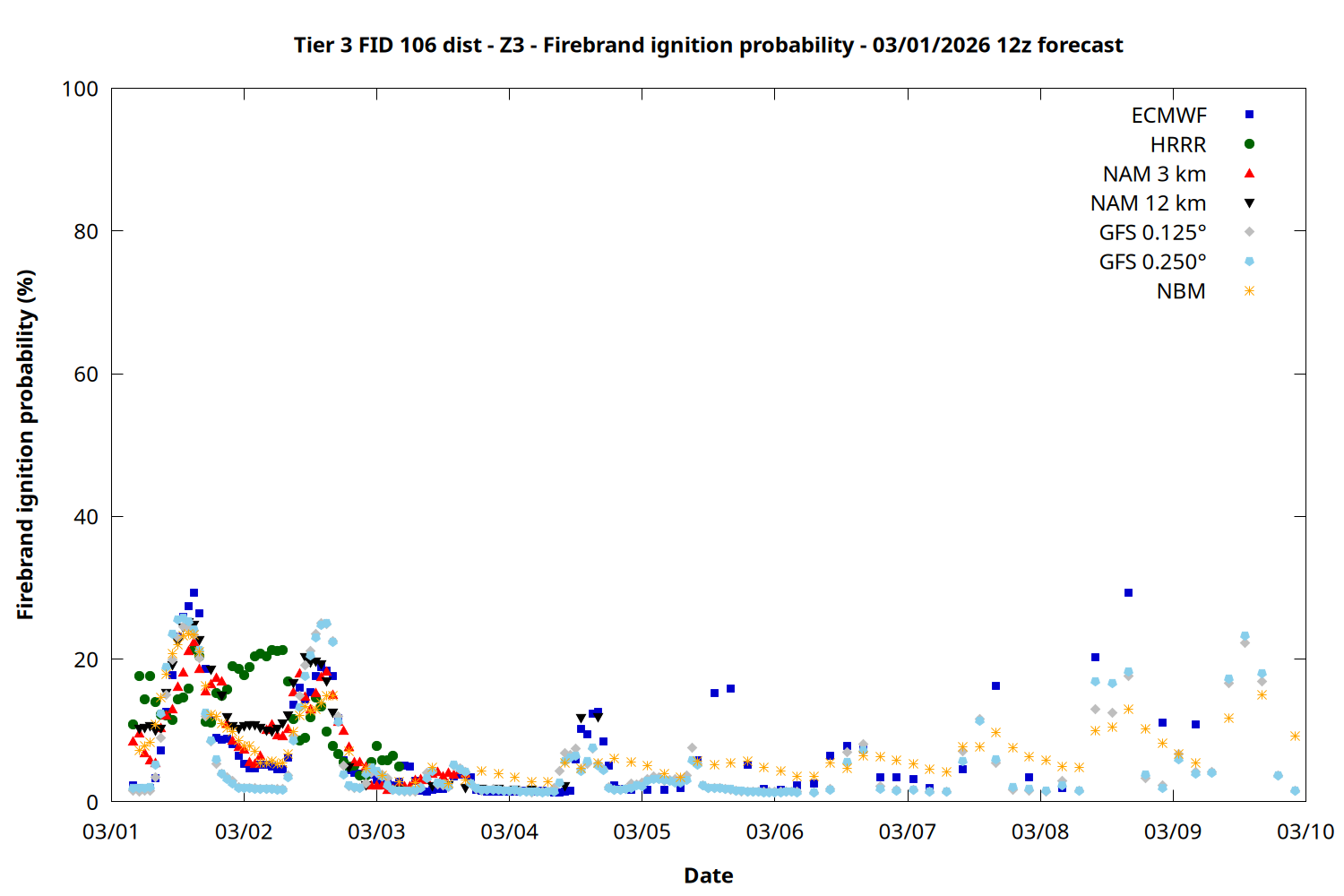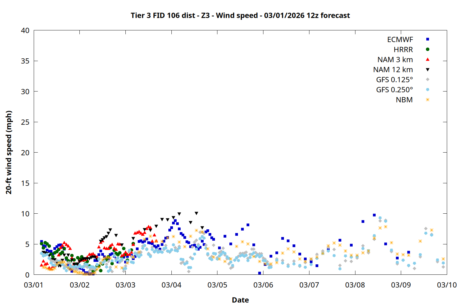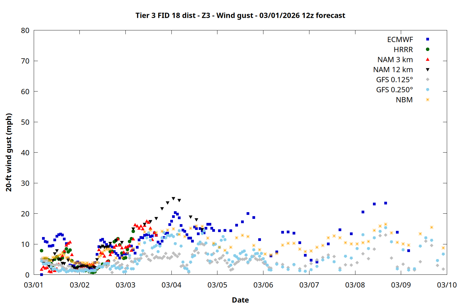 | Zone | Mar 01 | Mar 02 | Mar 03 | Mar 04 | Mar 05 | Mar 06 | Mar 07 |